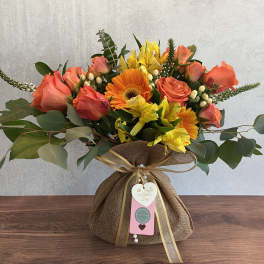 Price: $59.00 Linen Wrap: Suzie’s Signature Arrangement (Orange & Yellow Series Color) Product Tags: Same-day Delivery