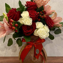 Price: $59.00 Linen Wrap: Suzie’s Signature Arrangement (Lilies & Red Roses Mix) Product Tags: Best seller Same-day Delivery